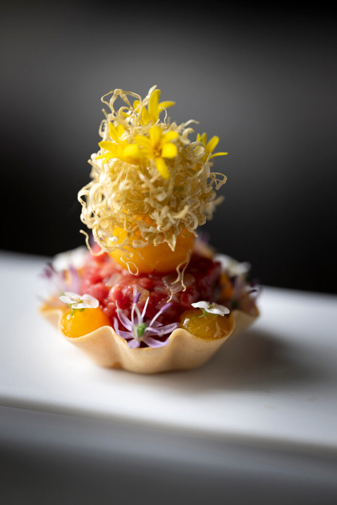 Met een lengte van zeven meter is het doek het grootste dat Verkaeren tot nu toe realiseerde. Het is zeker geen decoratief object: het fungeert straks als visueel venster naar buiten. “Een eerbetoon aan de hemel, het plein, en de naam van het restaurant,” aldus Dimitri De Koninck. De chef, die maandag ook zijn verjaardag vierde, noemt het werk een perfecte aanvulling op het precieze en gelaagde karakter van zijn tasting menu van tien gangen.